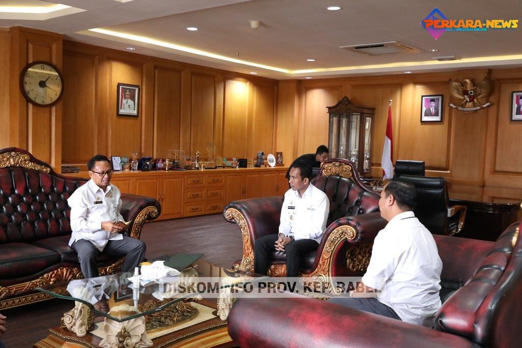 PANGKALPINANG,Perkaranews.com – Penjabat (Pj) Gubernur Kepulauan Bangka Belitung (Kep. Babel) Suganda Pandapotan Pasaribu, menerima kunjungan kerja Kepala Cabang BPJS Ketenagakerjaan Babel Abdul Soleh, di ruang kerjanya, Rabu (5/4/2023).