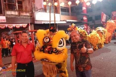 Sebelum meninggalkan lokasi, didampingi Forum Komunikasi Pimpinan Daerah (Forkopimda) Kota Pangkalpinang, Wako Molen menyapa pemain barongsai di lokasi tersebut, Molen juga menyapa sejumlah masyarakat etnis Tionghoa. (Yuko)