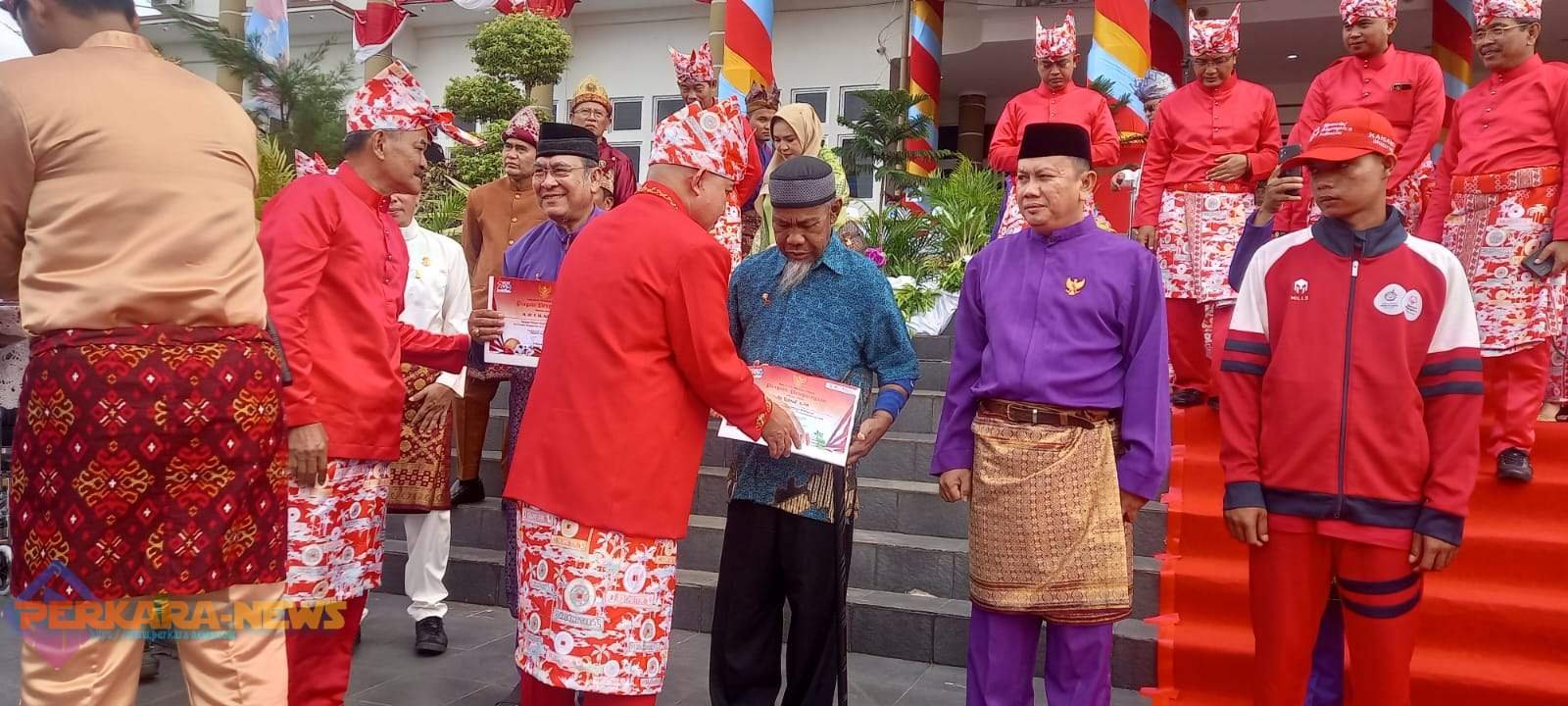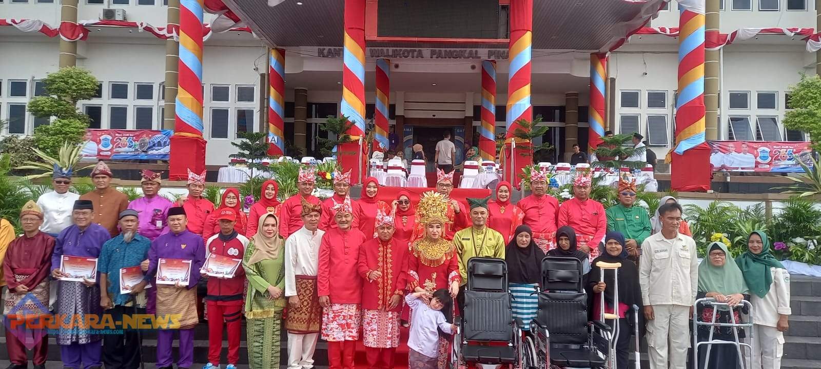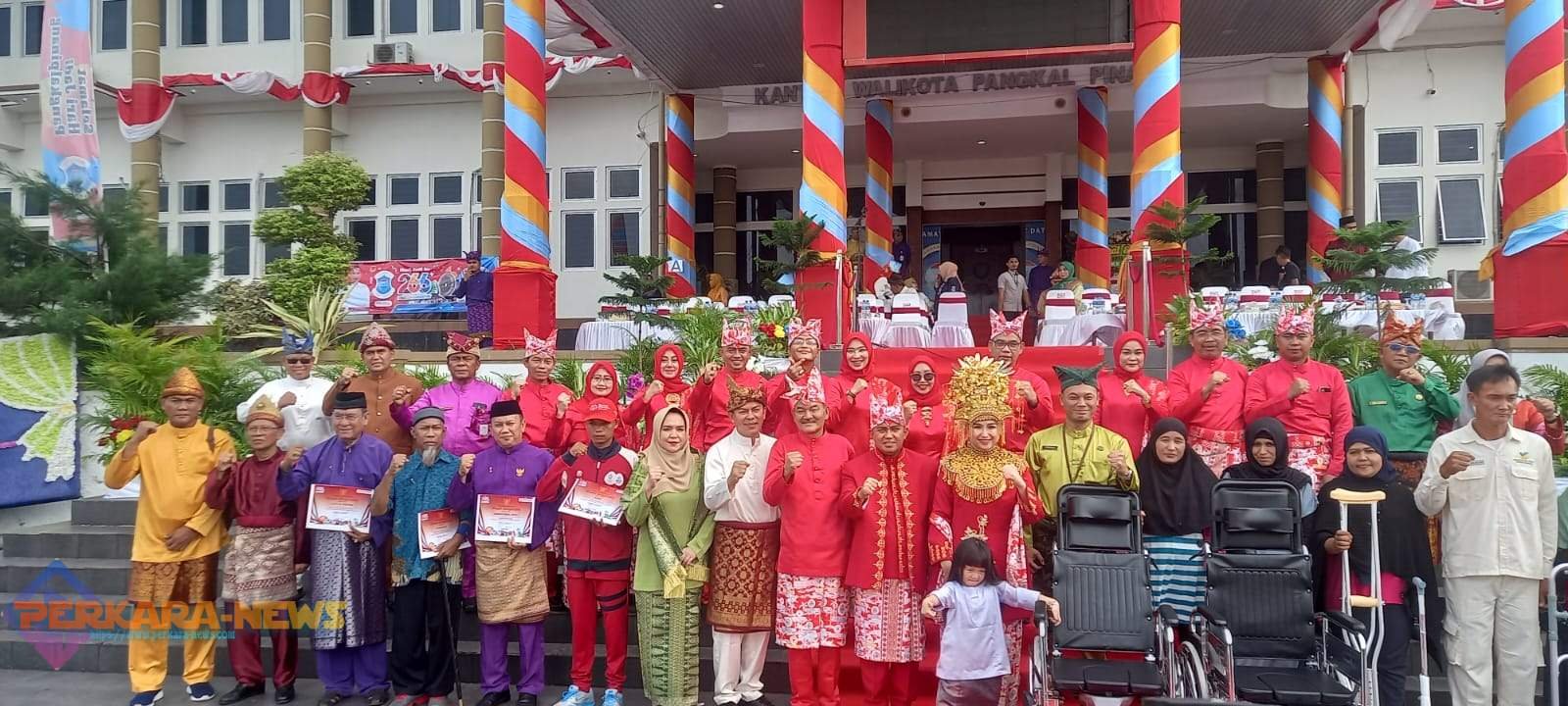PANGKALPINANG,PERKARANEWS – Wali Kota Pangkalpinang Maulan Aklil pimpin upacara hari jadi kota Pangkalpinang ke 266 tahun, Minggu (17/9/2023) dihalaman kantor Walikota Pangkalpinang. Lima (5)Tokoh masyarakat yang berprestasi dikota Pangkalpinang mendapatkan Pin emas dari Wali Kota Pangkalpinang.