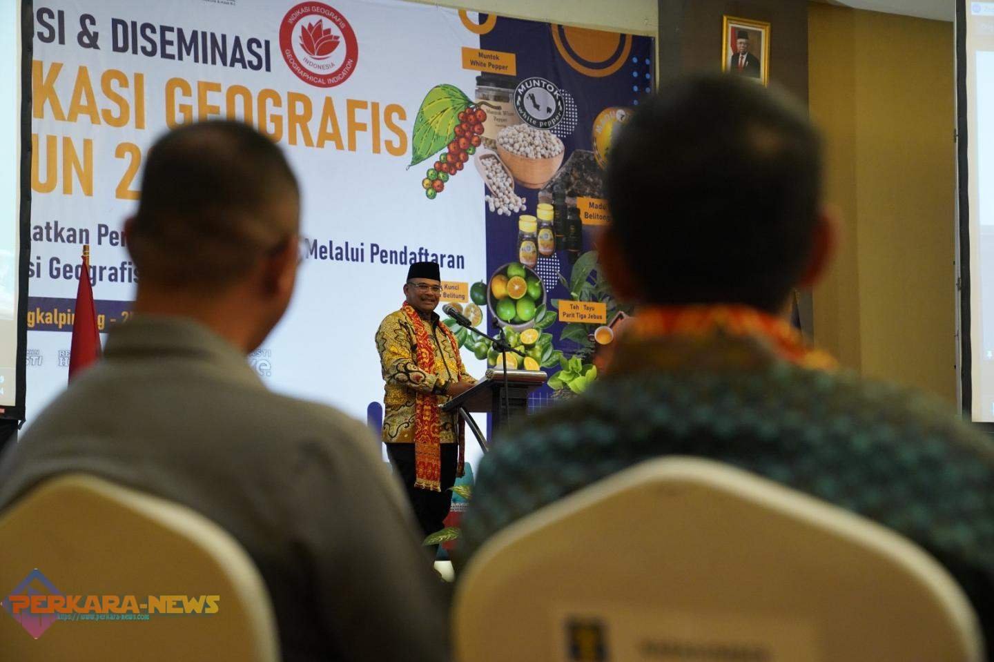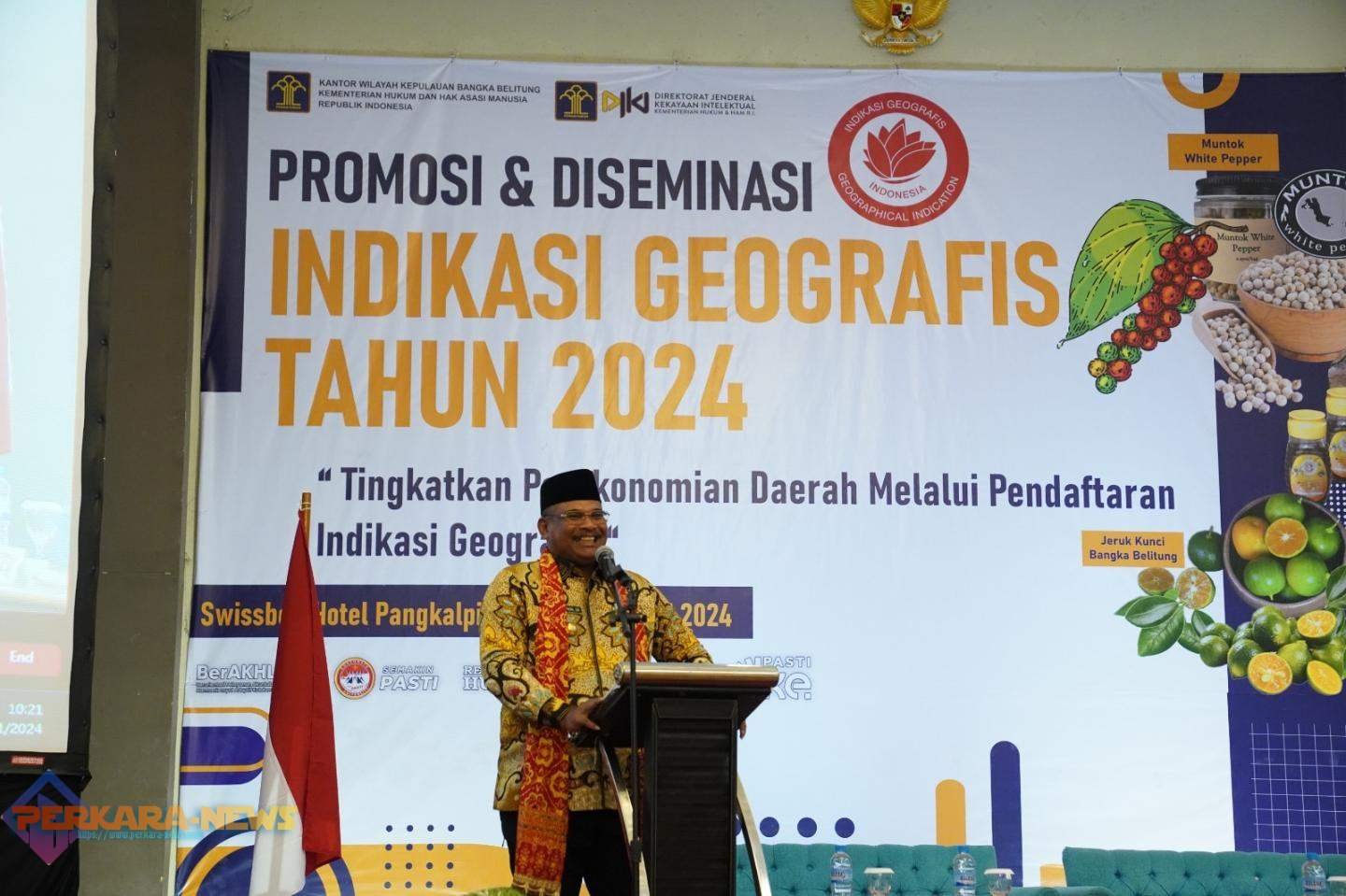 PANGKALPINANG,PERKARANEWS — Penjabat (Pj) Gubenrnur Kepulauan Bangka Belitung Safrizal ZA membuka kegiatan Promosi dan Diseminasi Indikasi Geografis Tahun 2024 yang mengangkat tema “Tingkatkan Perekonomian Daerah Melalui Pendaftaran Indikasi Geografis” di Swissbel Hotel Pangkalpinang, pada Kamis (25/1/2024).