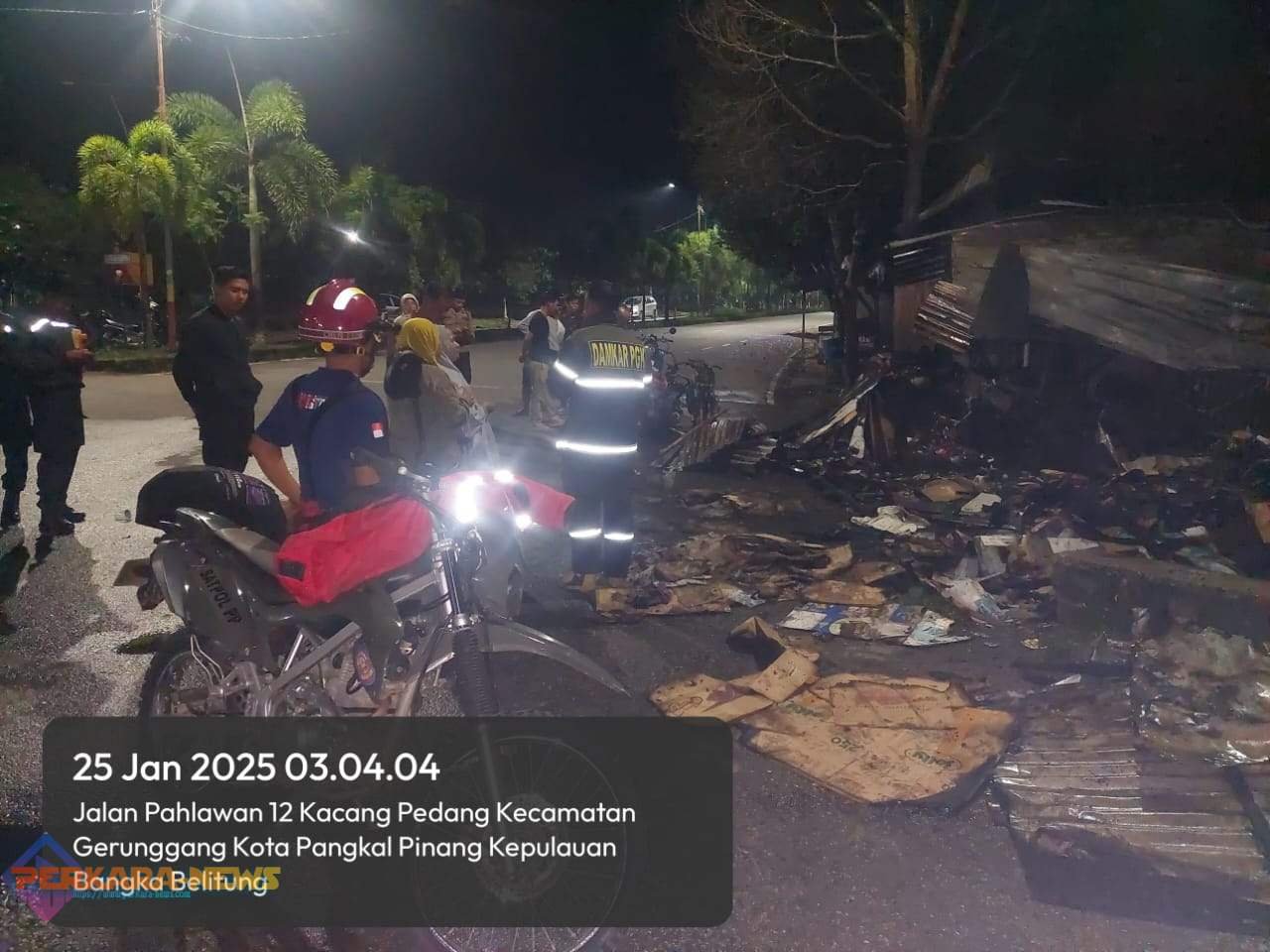 PANGKALPINANG,PERKARANEWS – Kebakaran hebat melanda Jalan Jembatan 12, Kelurahan Kacang Pedang, Kecamatan Gerunggang, Pangkalpinang pada Sabtu (25/1/2025) dini hari. Dua kios yang menjadi sumber penghidupan Syaiful Rahman dan Budi Ja’far ludes dilalap si jago merah. Peristiwa tragis ini menimbulkan kerugian materiil yang diperkirakan mencapai ratusan juta rupiah serta meninggalkan trauma mendalam bagi para korban.