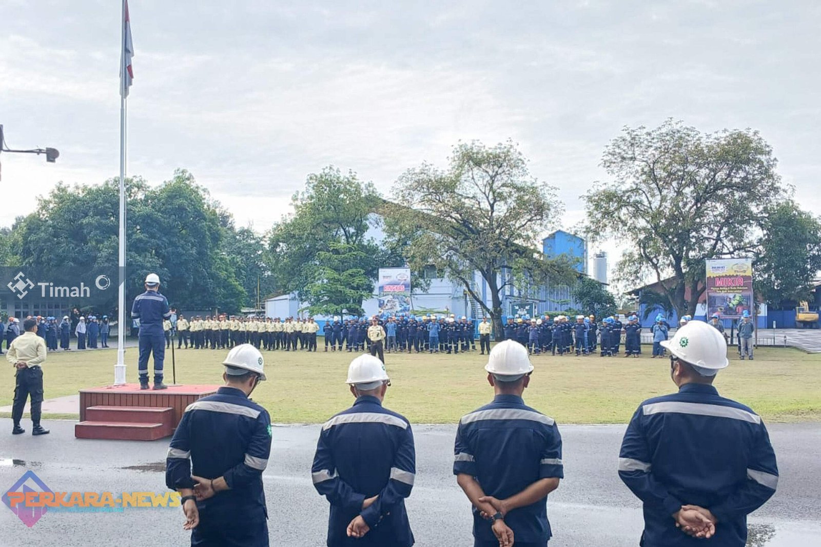 Salah satu wujud komitmen dalam penerapan K3, Division Processing And Rifenery PT Timah menggelar Apel K3 di Lapangan Upacara Division Processing & Refinery, Senin (13/01/2025).
