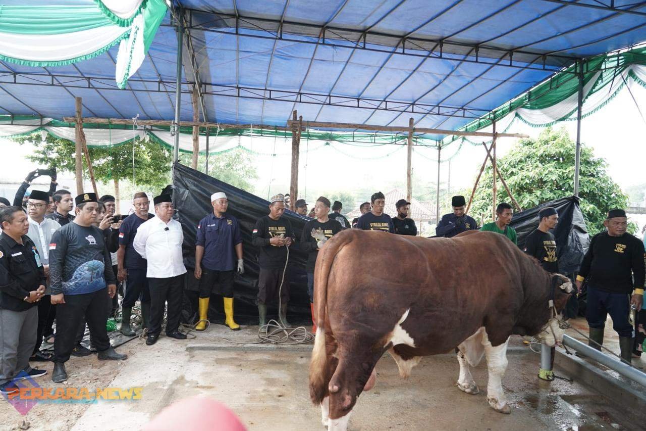 PANGKALPINANG,PERKARANEWS – Momen Hari Raya Iduladha 1446 Hijriah diwarnai dengan penyerahan sapi kurban bantuan kemasyarakatan dari Presiden Republik Indonesia, H. Prabowo Subianto, yang dilanjutkan dengan pemotongan hewan qurban di Masjid Agung Kubah Timah, Senin (9/6/2025).