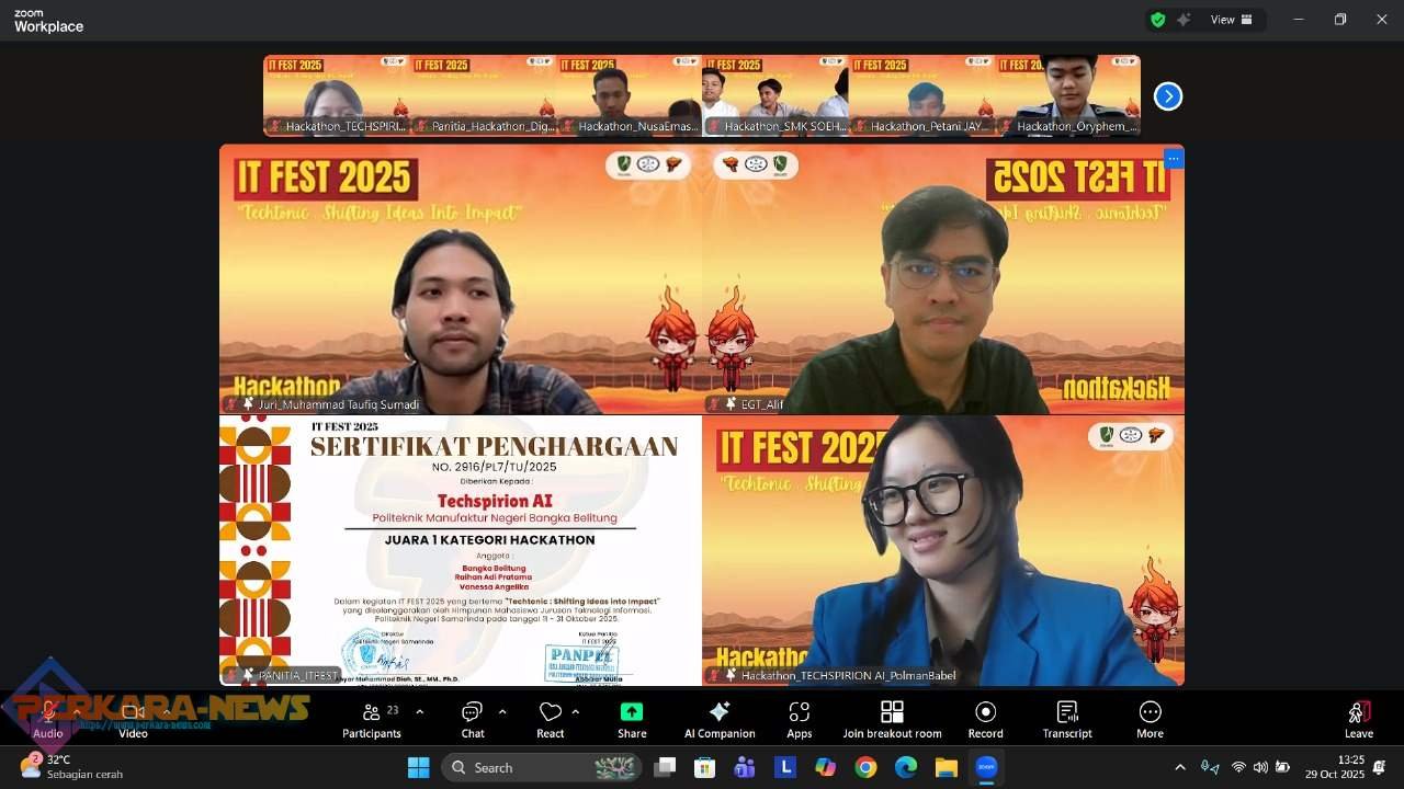 BANGKA, PERKARANEWS.COM – Berlatih tanpa henti akhirnya membuahkan hasil gemilang. Mahasiswa Program Studi Teknologi Rekayasa Perangkat Lunak (TRPL) Politeknik Manufaktur Negeri Bangka Belitung (Polman Babel) berhasil menjuarai Information Technology Competition (IT COMP) 2025 yang diselenggarakan Politeknik Negeri Samarinda secara daring, Rabu (29/10/2025).