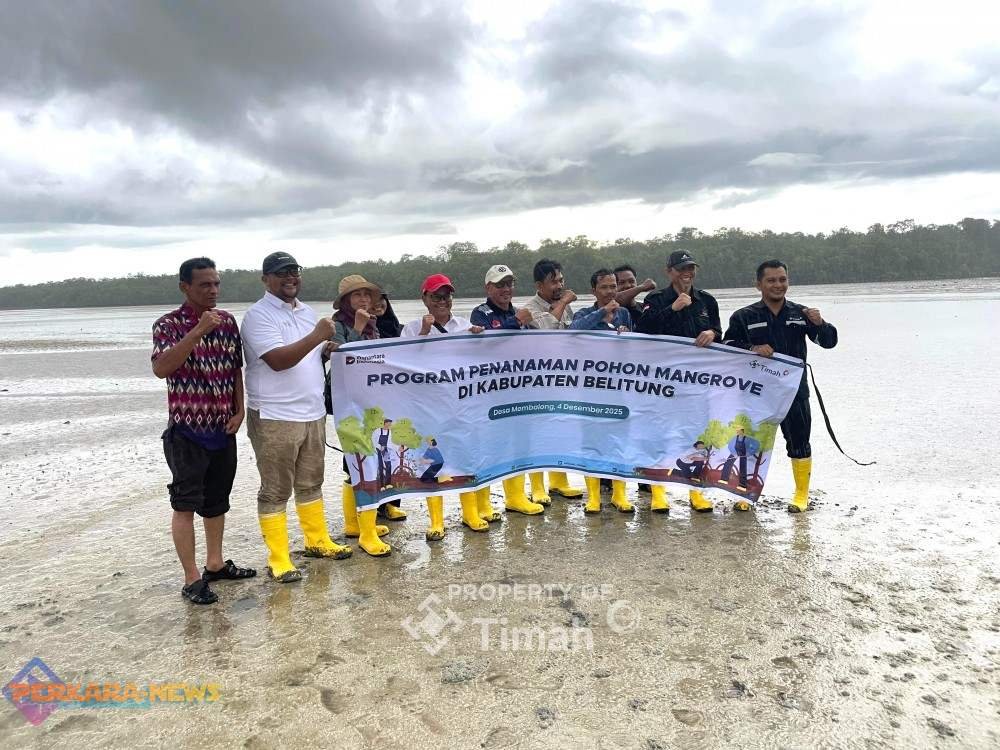 BELITUNG, PERKARANEWS.COM — PT TIMAH Tbk kembali menunjukkan komitmen dalam pelestarian lingkungan melalui kegiatan penanaman mangrove di kawasan pesisir Dusun Dudat, Desa Lassar, Kabupaten Belitung, Kamis (4/12/2025).